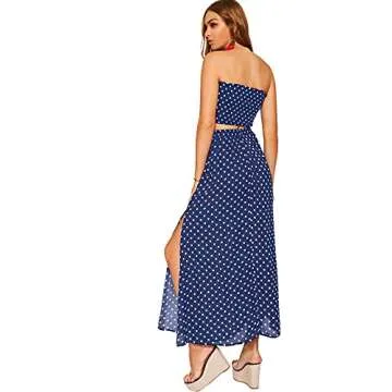 Floerns Women's Summer Printed 2 Piece Outfit Crop Tube Tops and Split Long Skirt Set Navy New M