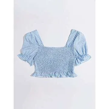 Floerns Women's Summer Square Neck Schiffy Drawstring Front Crop Top Blouse Baby Blue M