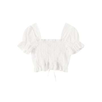 Floerns Women's Summer Square Neck Schiffy Drawstring Front Crop Top Blouse A White M