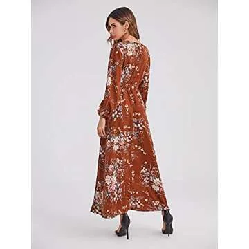 Floerns Women's Summer Wrap V Neck Long Sleeve Belted Floral Print Maxi Dress