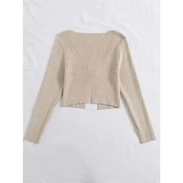 Floerns Women's Tie Front Long Sleeve Rib Knit Shrug Sweaters Cardigan Crop Top A Khaki XS