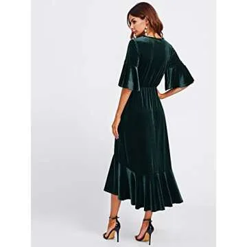 Floerns Women's Trumpet Sleeve Flounce Ruffle Hem Velvet Midi Dress Green M