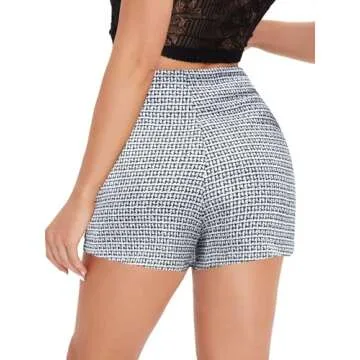 Floerns Women's Tweed Wrap Button Front High Waist Asymmetrical Skirt Shorts Black and White S
