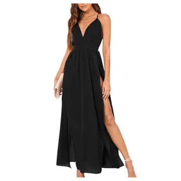 Show moreIntroducing the **Floerns Women's V Neck Spaghetti Strap Backless Split Cocktail Party Maxi Long Dress**! This stunning black dress combines elegance and sexiness with its deep V neckline and plunging cut, making it the perfect choice for various occasions. Crafted from lightweight fabric that, while non-stretch, gracefully complements your silhouette, this maxi dress ensures you look and feel your best. The crisscross back design adds a unique flair, while the split on both sides offers a youthful and daring touch. A versatile essential, it caters to summer nights out, romantic dinners, or luxurious vacations.