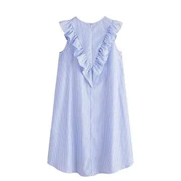 Floerns Women's Vertical Striped Ruffle Front Tunic Dress M Blue and White