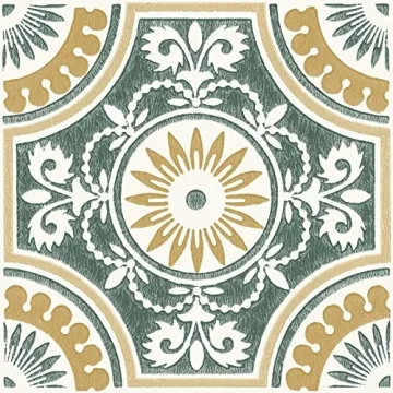 Show moreTransform your space with the retro-vintage charm of FloorPops 12-in by 12-in Yellow Ezra Vinyl Peel & Stick Floor Tiles. Each pack contains 10 tiles, covering a total of 10 square feet, making it an ideal choice for quick and stylish home updates. These tiles feature green and yellow Art Deco medallions that add a touch of elegance and nostalgia to any room. The peel and stick application ensures easy installation with no need for grout or special tools, saving you time and effort. Made from durable virgin vinyl with a textured low lustre finish and permanent adhesive, these tiles are not only beautiful but also water-resistant and washable, ensuring long-lasting durability and ease of maintenance.
