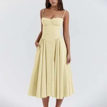 Floral Corset Dress for Women Formal Sleeveless Bustier Midi Dress Flowy Pleated Hem Low Cut Tank Dress with Pockets Y2k Boho Bodycon Midi Dress Summer Square Neck Fitted Bustier Sundress