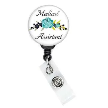 Floral Medical Assistant Retractable Badge Reel with Swing Clip and 36 Inch Cord.