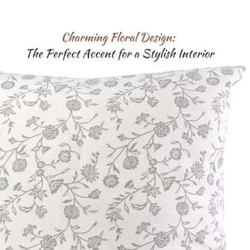 Floral Pillow Covers Vintage Flower Cushion Covers Rustic Grand Millennial Style Pillow Cases for Throw Pillows Home Decor for Sofa Couch Bed 20 x 20 inch Set of 2 Cream White & Grey Botanical Design