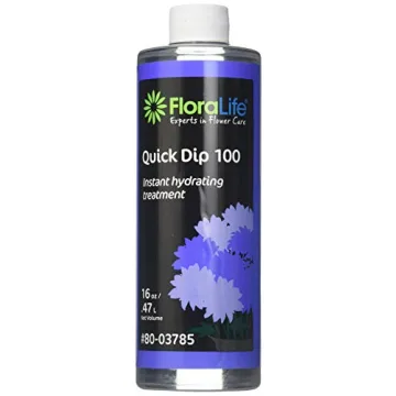 Floralife Quick Dip hydrates flowers instantly by allowing them to absorb nutrients quickly. Just dip the stem in the solution for one second before placing it in water.