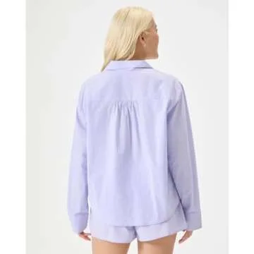 Show moreIntroducing the Florence by Mills Women's Long Sleeve Sleep Shirt, your new go-to for luxurious lounging and relaxed sleep. Crafted from 97% organic cotton with just a hint of stretch, this delightful sleep shirt is designed for ultimate comfort and style. Its lightweight button-up style features a chic chest pocket, perfect for holding small essentials like a nighttime lip balm or your favorite bedtime read. Available in a stunning Lavender Chambray, this sleepy staple also boasts the distinctive Florence by Mills logo plaque, adding a touch of elegance and trendiness to your nightwear collection.