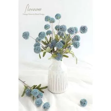 Floroom 5pcs Faux Silk Pompon Mum Artificial Flowers, Bulk Fake Mini Chrysanthemums with Stems for DIY Bouquet Centerpieces Wedding Fillers Slate Blue Arrangements Shower Decorations, Dusty Blue