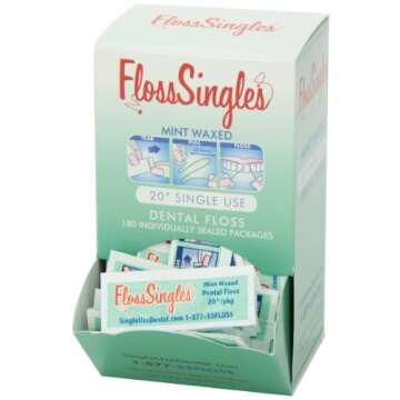 Floss Singles Dental Floss Dispenser Box, Light Green, Mint, 20" Strands, 180 Count