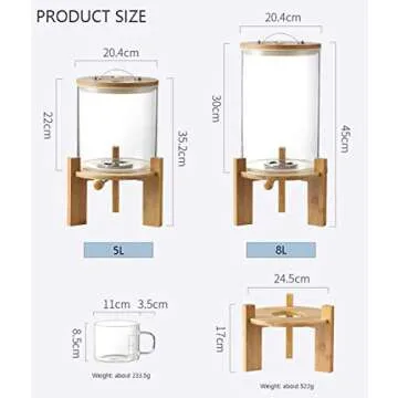 Flour and Cereal Container, 5L/8L, Rice Dispenser, Creative Glass Food Storge Container for Kitchen Organization and Pantry Store, Airtight Lid and Wooden Stand8L