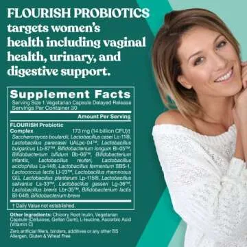Flourish Probiotics + Prebiotics for Women – Gut and Digestion, Urinary Tract, Reduce Bloating, Vaginal Health – 18 Clinically Proven Strains, 14 Billion CFU – 30 Shelf-Stable Mini Vegan Capsules