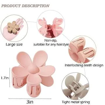Show more Introducing the ultimate solution for stylish yet functional hair management – the Flower Hair Claw Clips of 2024! These clips are not just ordinary accessories; they are designed to elevate your hairstyle while providing superior grip and comfort. Featuring an innovative interlocking teeth design, these clips ensure that your hair stays securely in place without causing damage. Available in a delightful array of 8 beautiful matte colors, these clips are perfect for individuals who cherish elegance and charm in their hair styling.