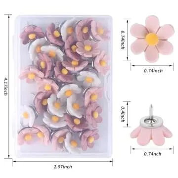 Flower Push Pins,30pcs Push Pins for Cork Board Pink Decorative Thumb Tacks Cute Push Pins for Cork Board Fun Thumb Tacks Decorative for Photo Wall, Feature Wall,Map, Bulletin Board, Office or Home