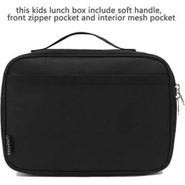 FlowFly Kids Lunch box Insulated Soft Bag Mini Cooler Back to School Thermal Meal Tote Kit for Girls, Boys, Black