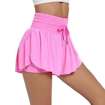 Flowy Womens Athletic Shorts High Waisted Gym Yoga Workout Running Butterfly Tennis Sports Acitve Skort Skirt with Pockets Spandex Sweat Pants Cute Lounge Trendy Clothes Summer Outfits Hot Pink M