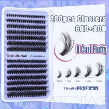 Show more Transform Your Beauty Routine with TOOCHUNAG Fluffy Lash Clusters! If you’re looking for a way to elevate your beauty game, these 60D+80D Individual Lashes are your perfect solution. Crafted with a unique flat hair material, these lash clusters promise stunning volume without the weight that often comes with traditional lashes.