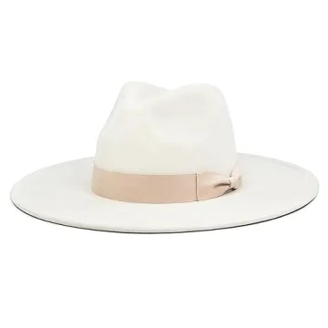 FLUFFY SENSE. Big Wide Brim Fedora Hat for Women - Nashville Outfits Western Hats Women's Felt Panama Rancher Hat (Ivory)