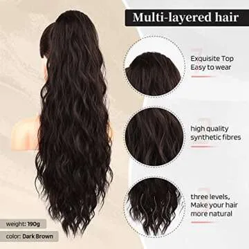 Flufymooz Ponytail Extension, 26 Inch Drawstring Ponytail Hair Extensions for Women,Long Curly Wavy Ponytail Natural Wavy Synthetic Hairpiece for Women Daily Use party (26 Inch Black Brown)