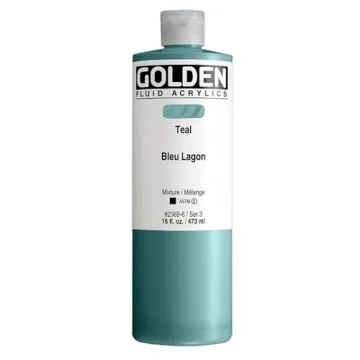 Discover the vibrant allure of Fluid Acrylics by GOLDEN in Teal, available in a generous 16 fl. oz. bottle. This professional-grade acrylic paint offers the perfect balance of fluidity and color intensity, making it a staple for both aspiring and seasoned artists. Formulated using a premium blend of two Arylide Yellows and Titanium Dioxide, this semi-transparent utility mixer showcases incredible versatility across a multitude of painting techniques. With an ASTM Lightfastness...