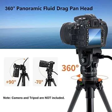 Fluid Head,pangshi VT-1510 Video Camera Tripod Head Fluid Drag Pan Tilt Head with 1/4” Quick Release Plate for Canon Nikon Sony DSLR Cameras Camcorder Shooting Filming