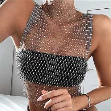 Show moreIntroducing the FlyCC Women's Sexy Sheer Mesh Rhinestone Sleeveless Beach Cover Up Crop Top Shirt, your ultimate companion for dazzling summer days and glamorous nights! Crafted from a blend of soft and stretchy polyester and adorned with glistening rhinestones, this stunning top combines style, comfort, and sexiness. Its sleeveless design and scoop neck highlight your shoulders while delivering a delicate touch of allure, making it the perfect addition to any beach attire or party outfit.