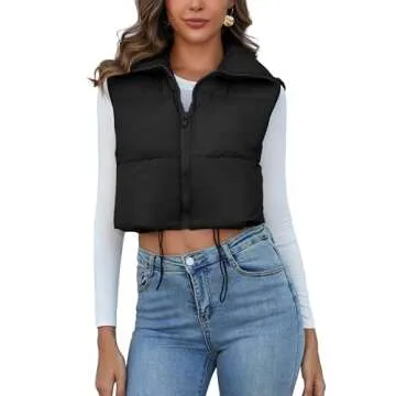 Flygo Women's Cropped Puffer Vest Zip Up Stand Collar Sleeveless Padded Bubble Vest(Black-M)