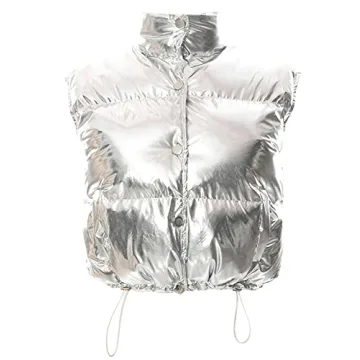 The versatility of this vest is unparalleled. The adjustable drawstring hem gives you the freedom to customize the fit to your liking, while the two slant pockets provide both style and practicality. Designed for the modern woman who appreciates fashion as much as comfort, this vest pairs flawlessly with everything from a classic long-sleeve top to a cozy hoodie. Its shiny metallic fabric not only exudes glamour but also catches the eye, promising compliments wherever you go. Get ready to stand out in the stylish presentation of the Flygo Women's Winter Crop Vest!