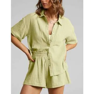 Show moreIntroducing the Flygo Women’s Casual 2 Piece Outfits, an exquisite blend of style and comfort tailored for the modern woman. Designed with versatility in mind, this chic cotton linen set includes a button-down shirt and a pair of paperbag shorts, both crafted from a light, soft, and breathable fabric that keeps you cool and comfy during the warm summer months. The eye-catching light green hue elevates your wardrobe, perfect for any occasion from casual outings to relaxing beach days. Easy to style, this lounge set transitions effortlessly from the beach to a casual street look, ensuring you remain on-trend and fashionable.