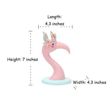 Show more Introducing the FLYING BALLOON Elegant Pink Flamingo Shaped Resin Eyeglass Holder, the perfect blend of fun and functionality for eyeglass wearers of all ages! This delightful flamingo-shaped stand not only provides a charming way to store your glasses but also adds a splash of color to any room. Constructed from high-quality resin, it is both durable and sturdy, ensuring that your eyeglasses are safely held in place without fear of tipping over. Measuring 4.3 inches in length and width, and standing tall at 7 inches, it's the ideal size for bedside tables, desks, or classrooms.