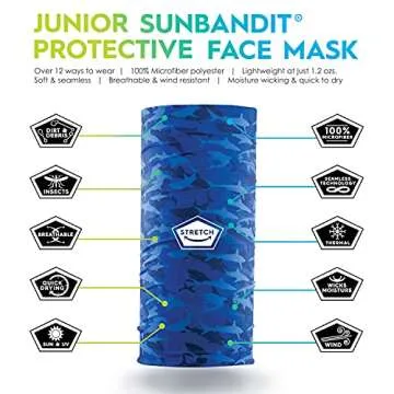 Show more If you're an outdoor enthusiast, then the SunBandits face and neck cover is a must-have addition to your gear. Crafted with high-quality, lightweight fabric, this versatile item ensures maximum protection against the sun’s harmful rays while also shielding you from dust, bugs, wind, and spray. Whether you're fishing, riding, biking, running, or climbing, the SunBandits offer reliable coverage and comfort in any environment. Designed to fit all shapes and sizes, it provides a reassuring UPF 30+ protection. No more worrying about skin damage or discomfort while enjoying your favorite activities!