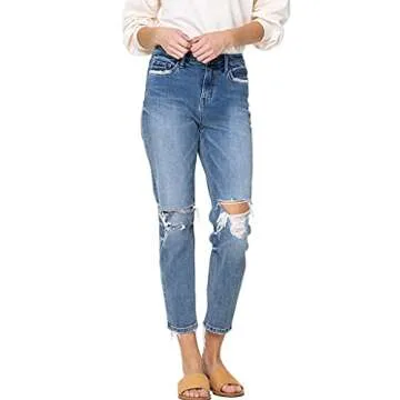 Show moreStep into ultimate comfort and style with the Flying Monkey Distressed High-Rise Boyfriend Jeans in Blue. Perfectly designed for the modern woman, these jeans feature a distressed finish that captures the essence of a casual yet chic look. With shredded holes and intentional rips at the knees and hems, they provide a lived-in feel that makes you feel effortlessly stylish. The high-rise fit enhances your silhouette, while the ankle to regular length offers versatility, making it easy to pair with your favorite sneakers or boots.