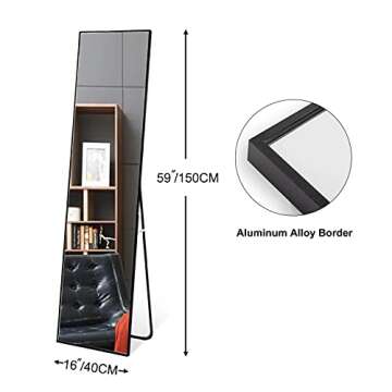 FLYMUHJIA Wall Mirror Full Length Full Body, Floor, Standing Mirror with Aluminum Alloy Thin Frame for Bedroom Living Room, 59” X16” Black