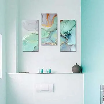 FlyWallD Ink Painting Navy Blue Marble Canvas Modern Wall Art Abstract Bedroom Print Large Wall Home Improvement Preferred Set of 3 Panel(Large)