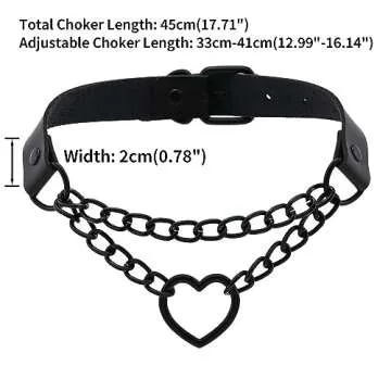 Show more Introducing the FM FM42 Black PU Simulated Leather Gothic Punk Choker Necklace, a stylish accessory designed to elevate your fashion game! Crafted from high-quality PU simulated leather and alloy, this necklace is both lightweight and durable, weighing in at just 45g. With a sleek width of 2cm (0.78 inches) and an adjustable length ranging from 33cm to 41cm (12.99" to 16.14"), it offers a comfortable fit for any neck size. The total length of the choker is 45cm (17.71 inches), ensuring it sits perfectly around your collar, making it an ideal piece for layering or wearing alone. The classic and minimalist design of this choker allows it to seamlessly integrate with any outfit, whether you're dressing up for a night out or adding a touch of edge to your everyday look.