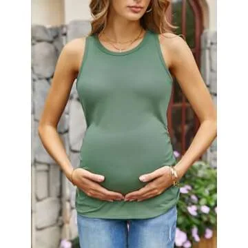FMEYOA Crew Neck Tank Tops for Maternity Slim Fitting Shirts Summer Pregnancy Vest Light Green