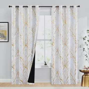 FMFUNCTEX 100% Blackout Gold Curtains for Bedroom, Curtains 96 Inches Long Tree Branch Thermal Curtain Drapes for Living Room Darkening, Farmhouse Window Curtains Grommet Top 2 Panels