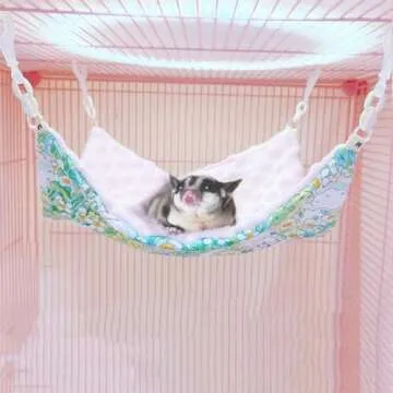 Fnaobai Rat Hammocks for Cage Small Pet Animal Accessories Hanging Warm Hammock Bed Soft Plush Hamster Guinea Pig Chinchilla Ferret Hammocks Carrier for Small Animal Playing Sleeping (Green Floral)