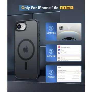 FNTCASE for iPhone 16e Phone Case: iPhone 16E 2025 Magnetic Matte Military Grade Drop Protection Phone Cover | Slim Anti-Slip Durable Shockproof Cases(Black)