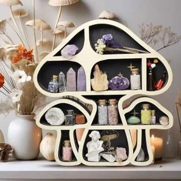 Show more If you’re looking for a stunning way to display your cherished crystals and collectibles, look no further than this remarkable Crystal Display Shelf from FNYDOX. Crafted from handpicked premium boxwood, this display shelf boasts not only superb craftsmanship but also a design that speaks volumes of elegance and charm. The unique cluster of 3 mushrooms motif gives it a cute and attractive look, making it an exceptional addition to various decor styles while serving a practical purpose. No rough edges or burrs are present as it has been meticulously polished, ensuring that it remains a fixture in your home for years to come.