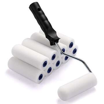 Foam Paint Roller, Roller Frame with 4-Inch Mini Paint Roller Cover Refills with Foam-Covered Ends, High-Density Foam Paint Tray Set for Room Home Repair Mini Paint Kits(12 Piece)