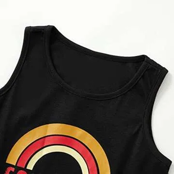 Focamia Mommy and Me Good Vibes Tassel Hem Matching Mini Tank Dresses with Rainbow Printed (Women Black, Large)