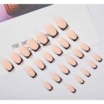 Show more Enhance your style and express yourself effortlessly with our stunning 24-piece false nails set. Made by a renowned brand dedicated to quality and elegance, these press-on nails are crafted from durable, non-toxic acrylic materials that prioritize health and sustainability. The black finish gives a chic and polished look, perfect for any occasion. Lasting for 1-3 weeks, these nails can withstand daily wear while maintaining their striking appearance.