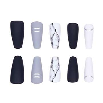 Show moreIntroducing the Foccna Marble Press on Nails – the perfect solution for anyone seeking a stylish, easy-to-apply manicure at home. This stunning set features an elegant white and black design, crafted from high-quality acrylic that promises durability without compromising style. With a full cover coffin shape that is truly on-trend, these medium-length nails provide a chic look for any occasion, from daily wear to special events. Easy to use, simply apply them with your preferred nail glue for an instant salon-worthy finish!