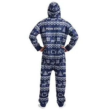 Show moreExperience the perfect blend of comfort and team spirit with the FOCO Penn State Nittany Lions NCAA Ugly Pattern One Piece Pajamas. Designed for ultimate lounging, these officially licensed pajamas feature a fun and quirky ugly pattern that truly embodies the spirited essence of game day. Made from soft and breathable polyester, they offer a cozy yet lightweight feel, perfect for both relaxing at home or showing off your Penn State pride. The convenient zipper closure and kangaroo pockets add functionality without compromising style, making them a must-have for any Penn State fan.