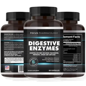 Show moreDiscover the ultimate digestive support with Focus Pharmacology's Digestive Enzymes and Probiotics Blend. This powerful 60-count supplement is meticulously designed to aid in the breakdown of proteins, fats, and carbohydrates, ensuring optimal nutrient absorption and digestive comfort. Formulated with a potent mix of Protease, Bromelain, Papain, Fungal Lipase, Fungal Lactase, Alpha-Galactosidase, and a trio of beneficial probiotics (L. acidophilus, L. casei, L. plantarum), this supplement is your go-to solution for digestive wellness. Take it 30 minutes before meals to experience its full benefits.