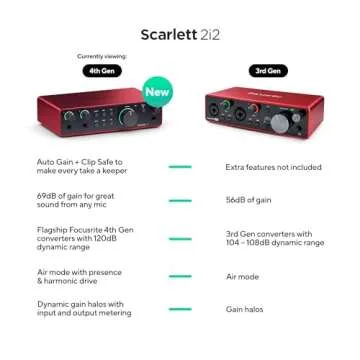 Focusrite Scarlett 2i2 4th Gen USB Audio Interface for Recording, Songwriting, Streaming and Podcasting — High-Fidelity, Studio Quality Recording, and All the Software You Need to Record (Renewed)
